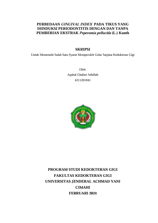 PERBEDAAN GINGIVAL INDEX PADA TIKUS YANG DI INDUKSI PERIODONTITIS DENGAN DAN TANPA PEMBERIAN EKSTRAK Peperomia pellucida (L.) Kunth