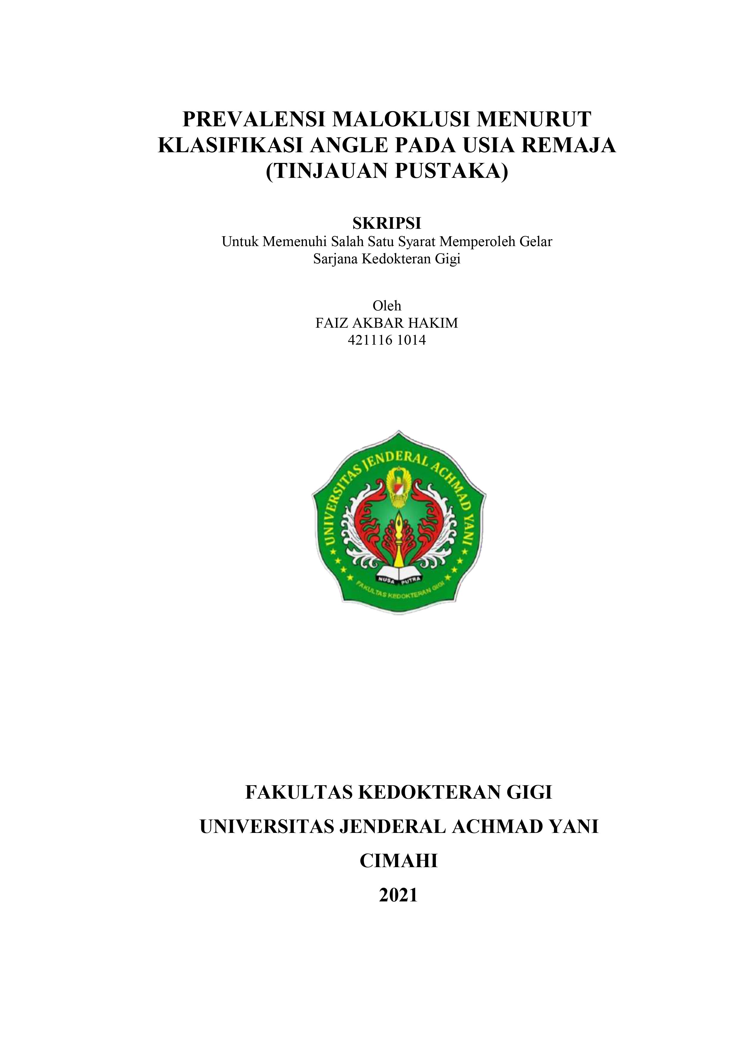 PREVALENSI MALOKLUSI MENURUT KLASIFIKASI ANGLE PADA USIA REMAJA (TINJAUAN PUSAKA)