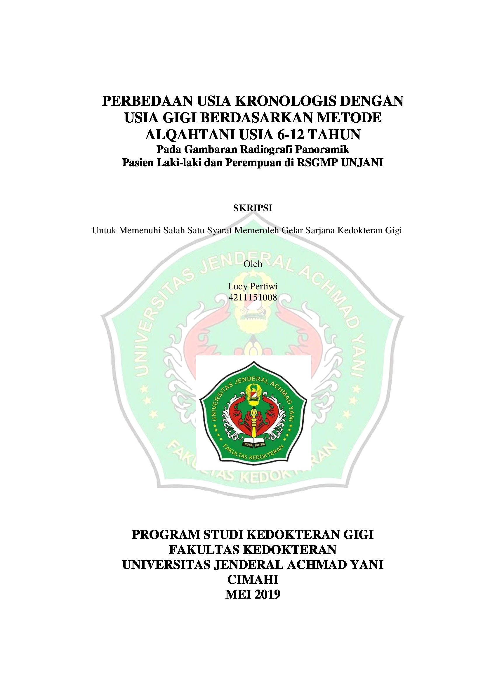 PERBEDAAN USIA KRONOLOGIS DENGAN USIA GIGI BERDASARKAN MEODE ALQAHTANI USIA 6-12 TAHUN Pada gambaran Radiografi Panaromik Pasien Laki-laki dan Perempuan di RSGMP UNJANI