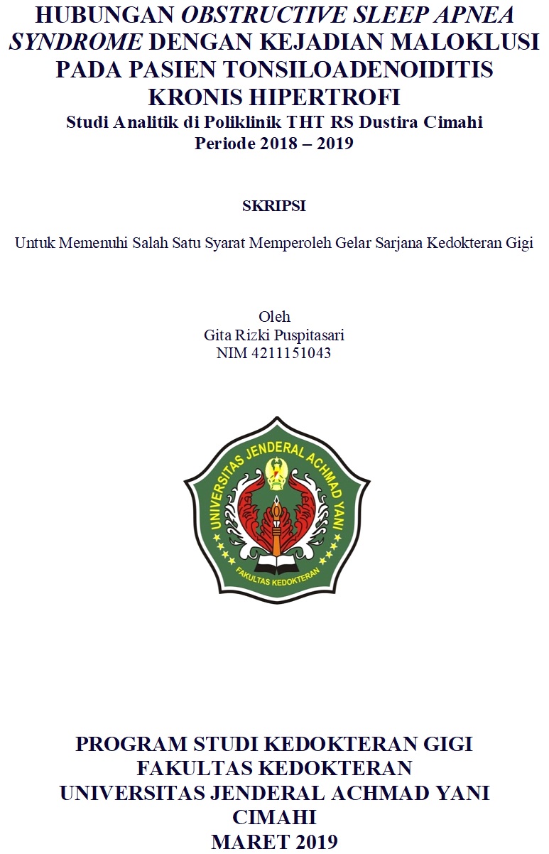 HUBUNGAN OBSTRUCTIVE SLEEP APNEA SYNDROME DENGAN KEJADAIN MALOKLUSI PADA PASIEN TONSIL OADENOIDITIS KRONIS HIPERTOFI