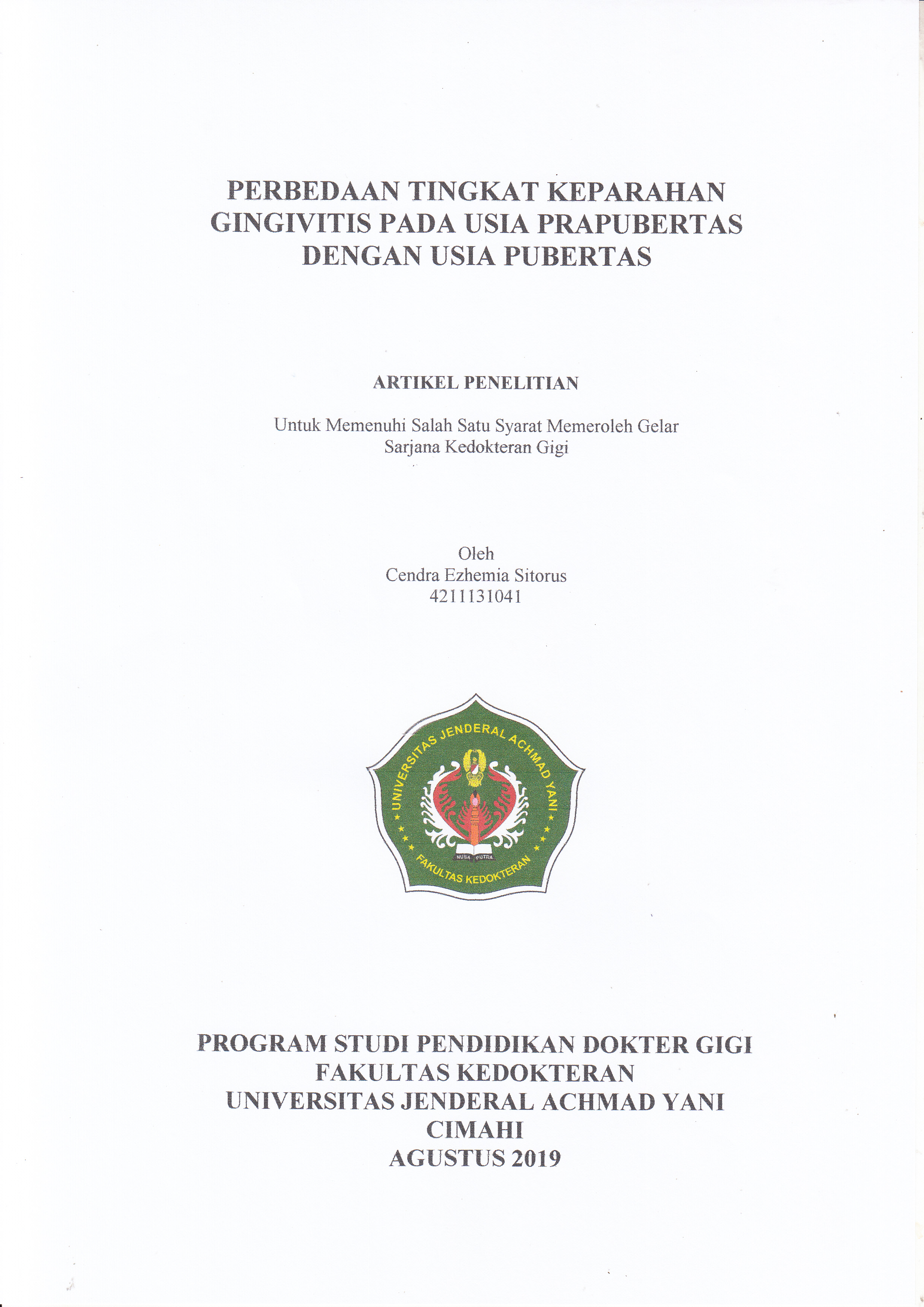 PERBEDAAN TINGKAT KEPARAHAN GINGIVITIS PADA USIA PRAPUBERTAS DENGAN USIA PUBERTAS