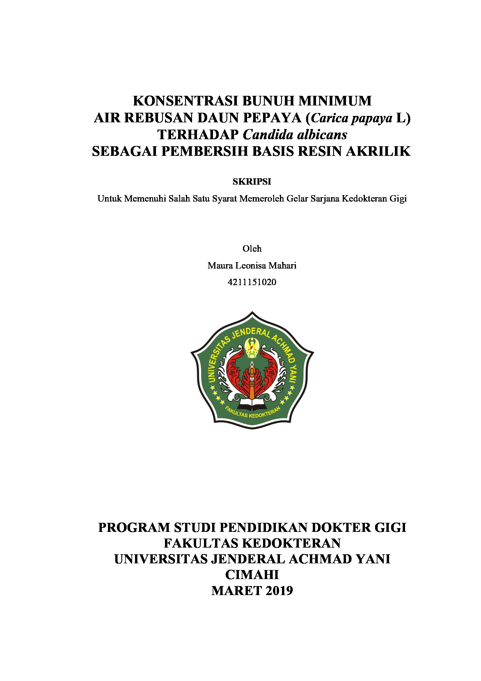 KONSENTRASI BUNUH MINUMAN AIR REBUSAN DAUN PEPAYA ( Carica papaya L) TERHADAP Candida albicans SEBAGAI PEMBERSIH BASIS RESIN AKRILIK