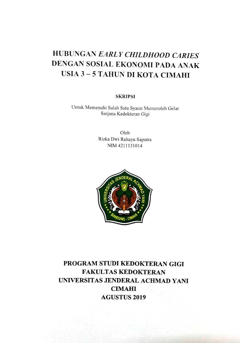 HUBUNGAN EARLY CHILDHOOD CARIES DENGAN SOSIAL EKONOMI PADA ANAK USIA 3 - 5 TAHUN DI KOTA CIMAHI
