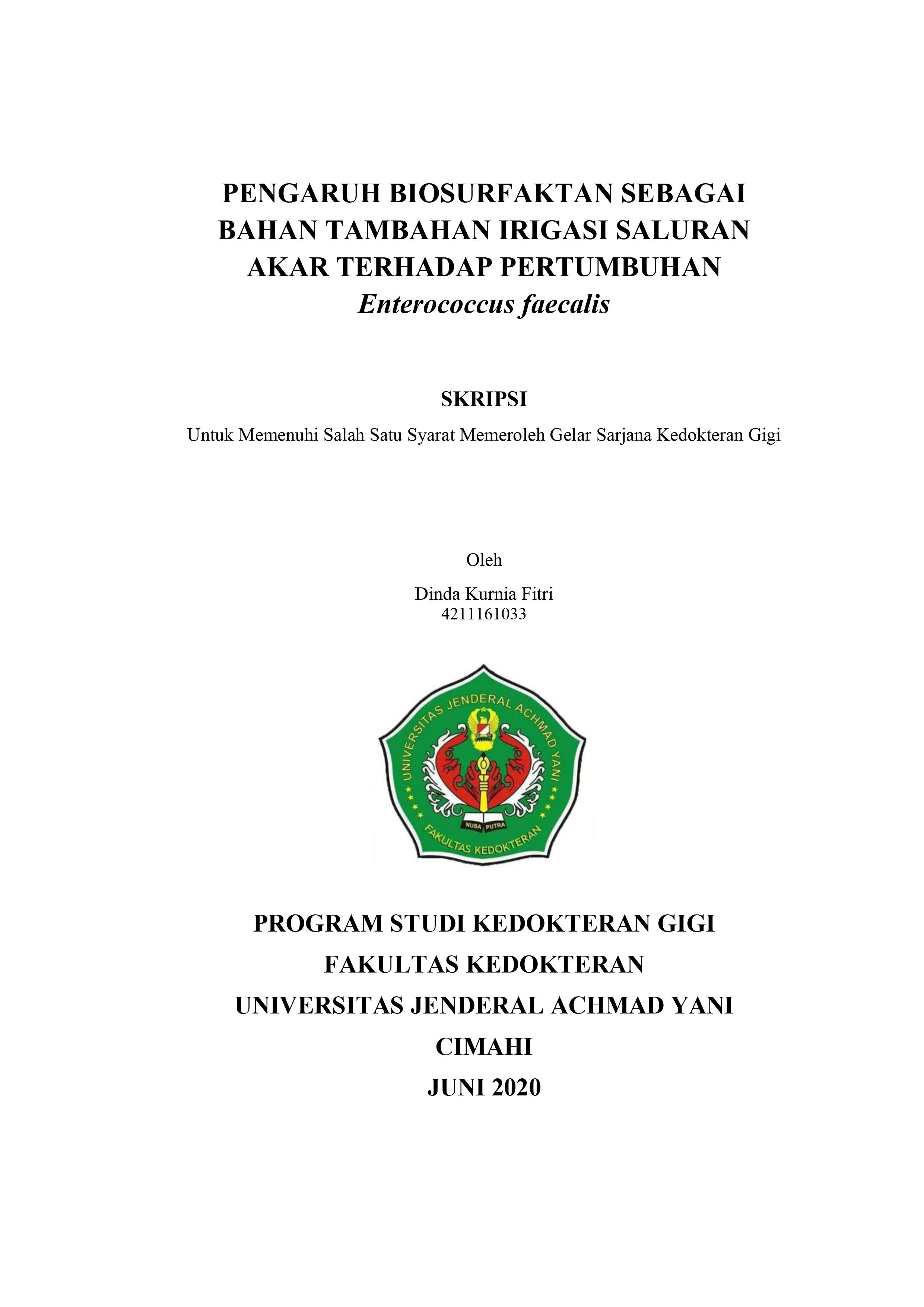 PENGARUH BIOSURFAKTAN SEBAGAI BAHAN TAMBAHAN IRIGASI SALURAN AKAR TERHADAP PERTUMBUHAN Enterococcus faecalisn