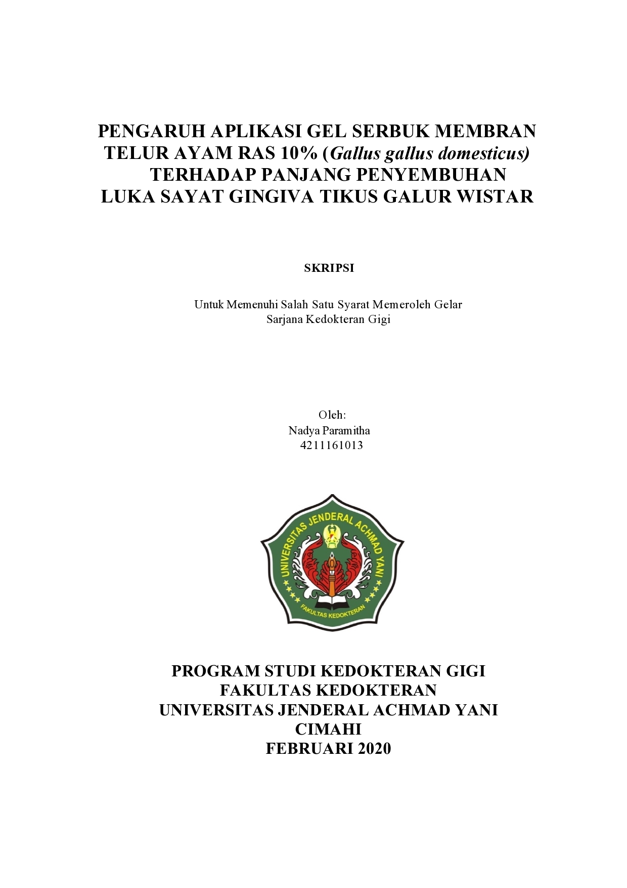 PENARUH APLIKASI GEL SERBUK MEMBRAN TELUR AYAM RAS 10% (Gallus gallus domesticus) TERHADAP PANJANG PENYEMBUHAN LUKA SAYAT GINGIVA TIKUS GALUR WISTAR