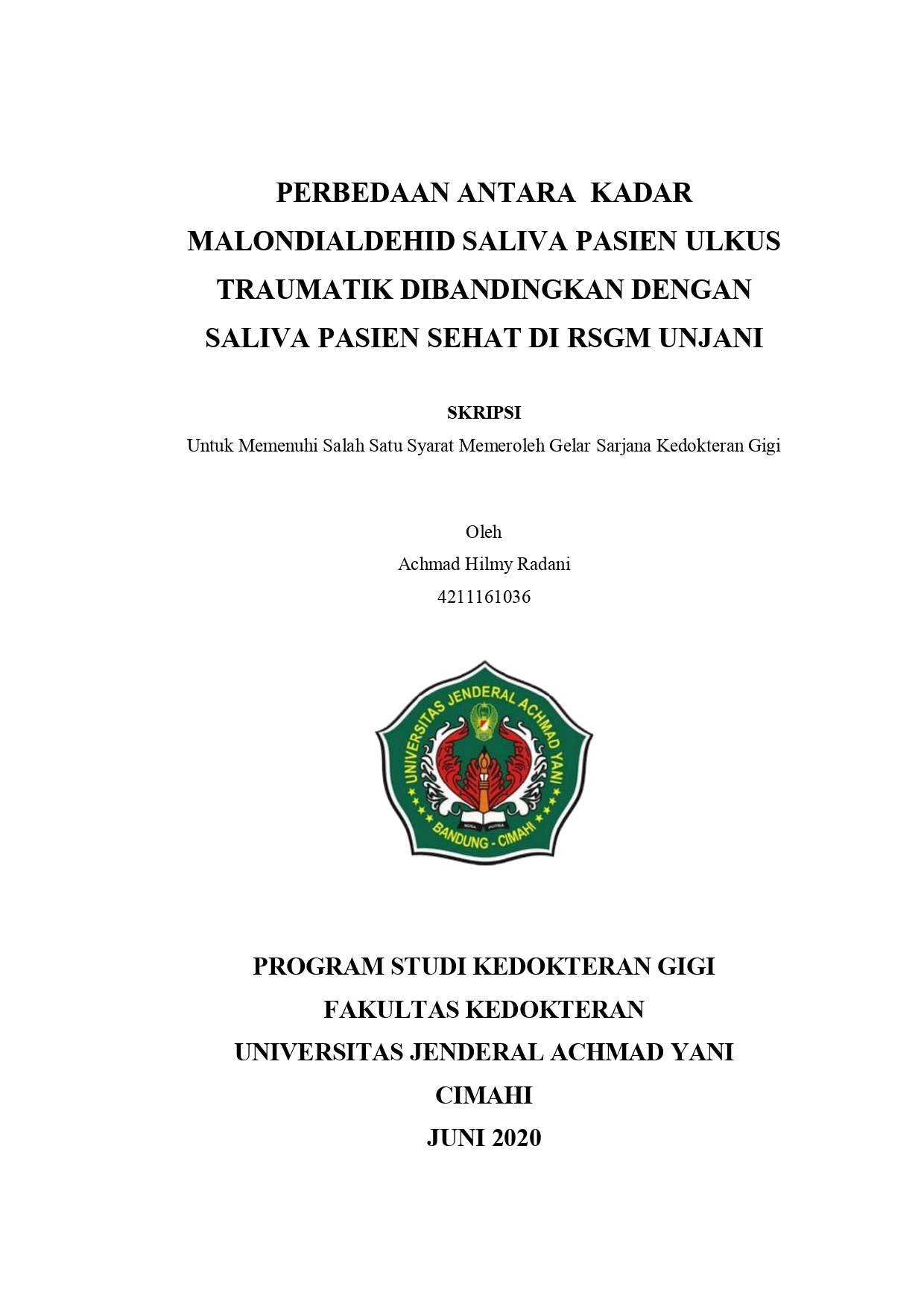 PERBEDAAN ANTARA KADAR MALONDIALDEHID SALIVA PASIEN ULKUS TRAUMATIK DIBANDINGKAN DENGAN SALIVA PASIEN SEHAT SI RSGM CIMAHI