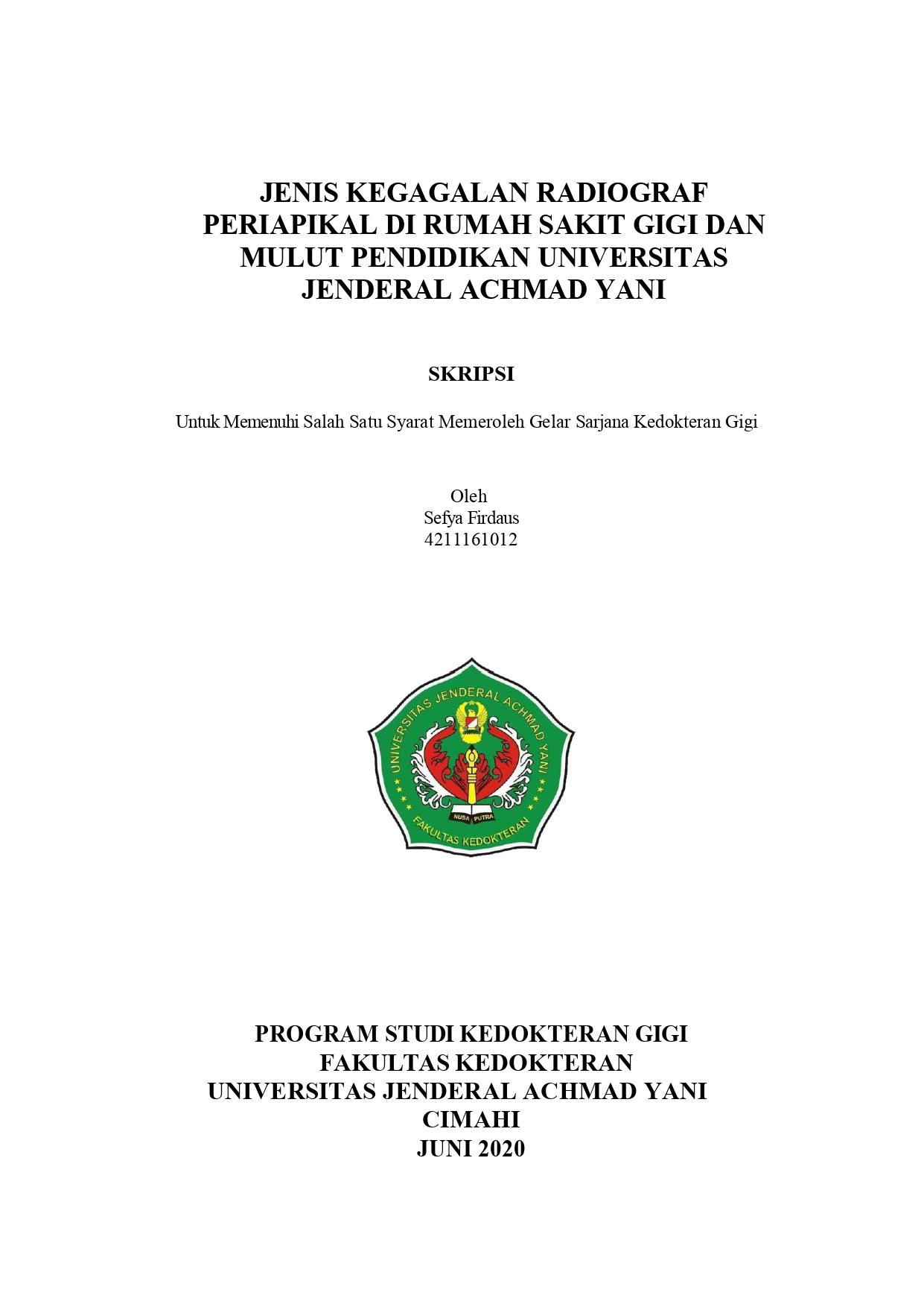 JENIS KEGAGALAN RADIOGRAFI PERIAPIKAL DI RUMAH SAKIT KEDOKTERAN GIGI UNIERSITAS JENDRAL ACHMAD YANI