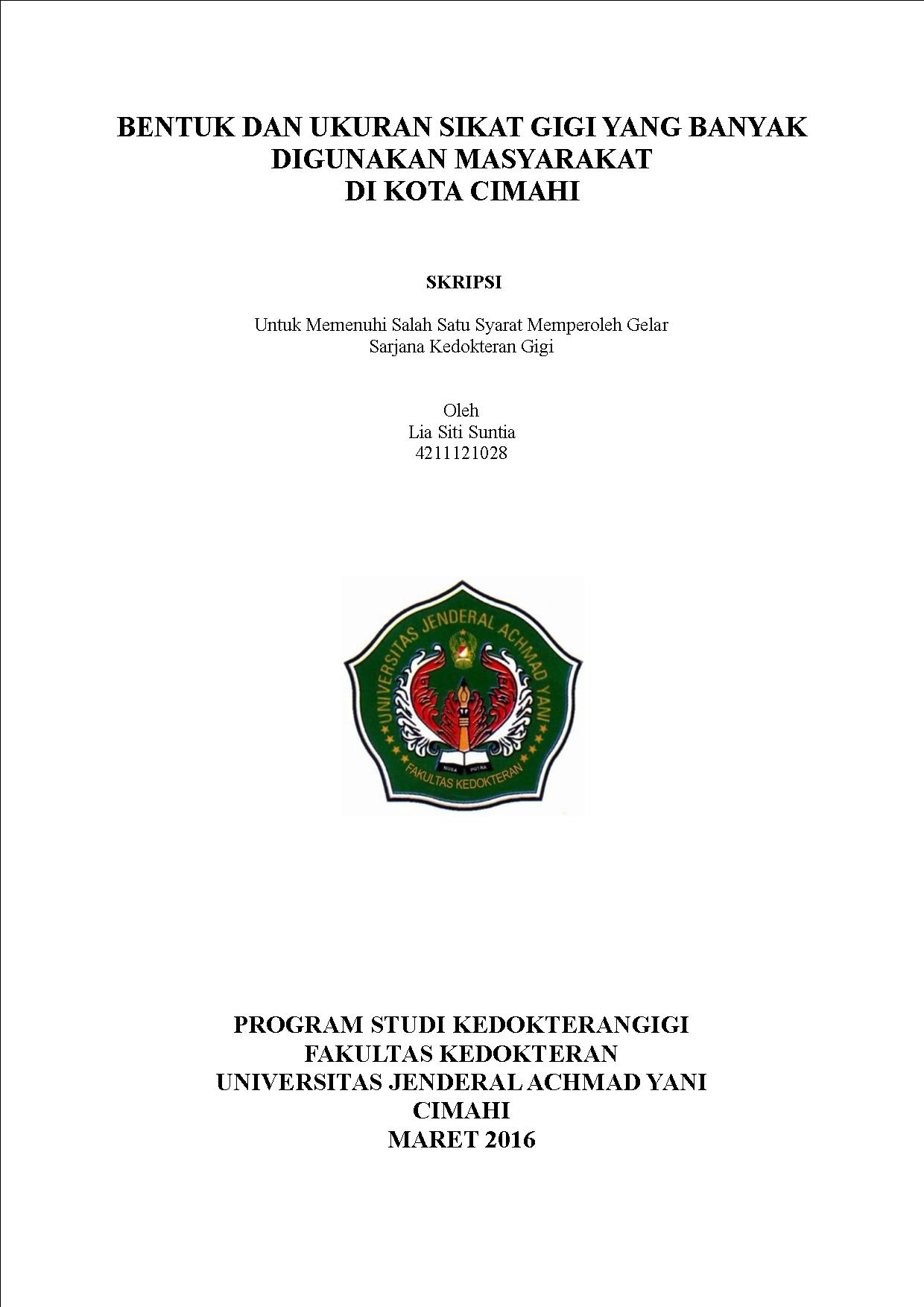 BENTUK DAN UKURAN SIKAT GIGI YANG BANYAK DIGUNAKAN MASYARAKAT DI KOTA CIMAHI