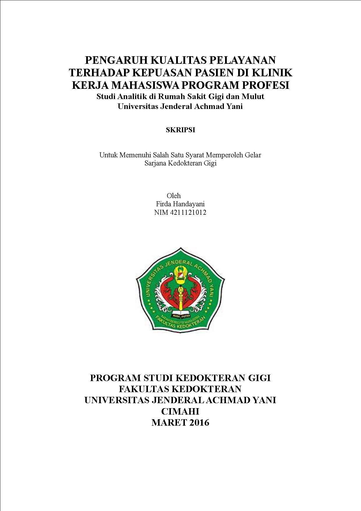 PENGARUH KUALITAS PELAYANAN TERHADAP KEPUASAN PASIEN DI KLINIK KERJA MAHASISWA PROGRAM PROFESI